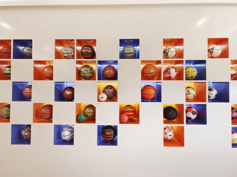 I seomra taispeána an táirge de Spórt Meidong, tá mórán de tháirgí cispheile, peile agus eitpheile de stíleanna éagsúla agus dathanna geala.