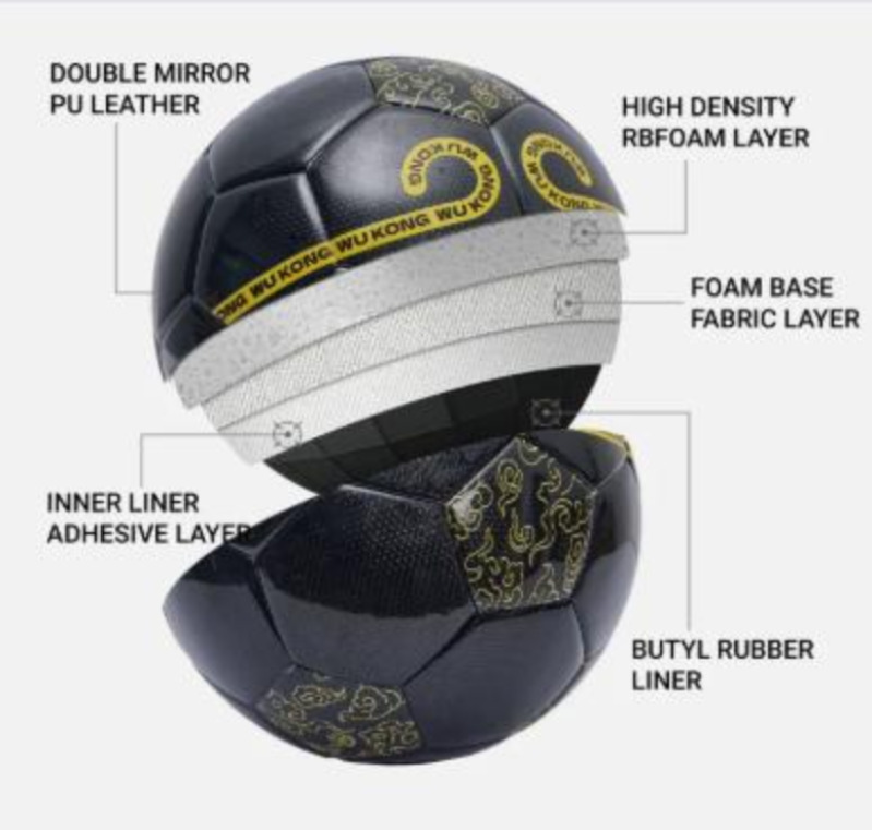 Ó thaobh na ceardaíochta de, úsáideann WELLMAN an teicneolaíocht teas-nasctha céanna go hiomlán le liathróidí oifigiúla Corn an Domhain, rud a bhriseann teorainneacha na bpeileanna traidisiúnta meaisín-fuaite. Úsáideann an teicneolaíocht cheannródaíoch seo nascadh comhleá teasa ardteochta, ardbhrú ag 120-150 ℃ chun na píosaí peile a chomhleá gan uaim, ag cruthú struchtúr comhtháite réidh, cothrom agus gan uaim. Ní hamháin go réitíonn an teicneolaíocht seo go hiomlán na fadhbanna a bhaineann le sceitheadh aeir agus ionsú uisce ag seams na liathróidí sacair traidisiúnta, feabhas suntasach a dhéanamh ar aerdhíonacht na liathróide agus brú aeir cobhsaí a choinneáil ar feadh tréimhse fada, ach freisin rialaíonn cruinneas na liathróide go cruinn, ag cinntiú trajectory eitilte cobhsaí agus ag cabhrú le húsáideoirí pasanna níos cruinne agus shots fadraoin a bhaint amach, ag aithris go foirfe ar thaithí spóirt Corn an Domhain.